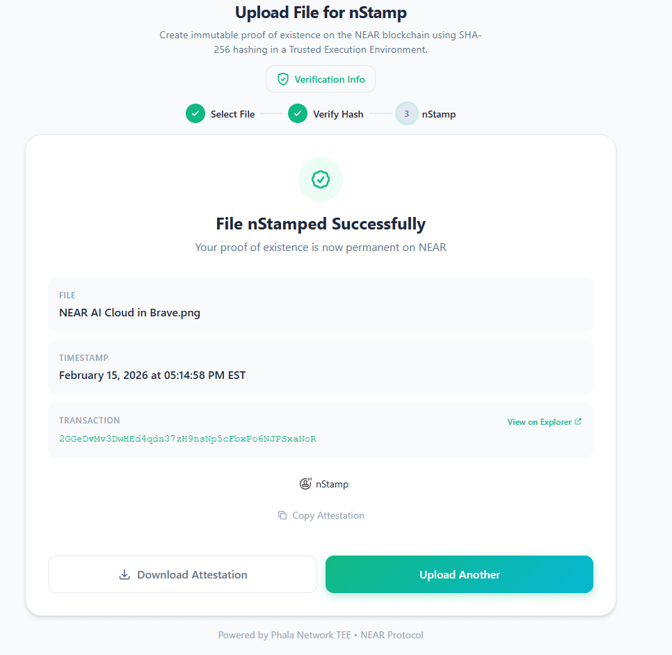 - Post on X: One-click provenance is real. Hash → stamp → verify. Try @nStamp_xyz ✅